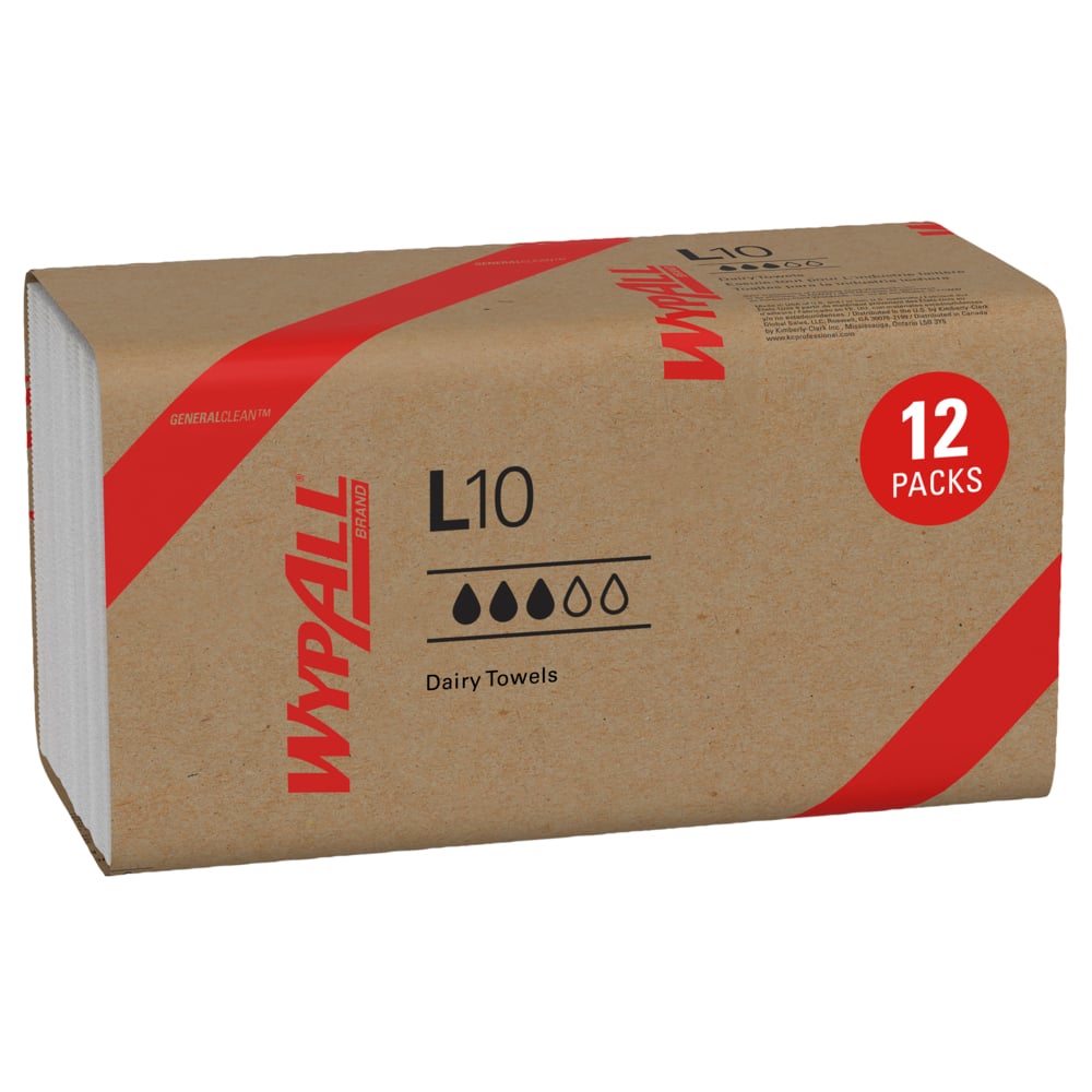 - 200 feuilles/boîte ; 12 boîtes de lingettes nettoyantes WypAll® GeneralClean™ L10/caisse ; 2 400 feuilles/caisse ; lingettes blanches à bandes pour produits laitiers ; lingettes à usage limité